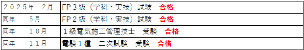 現在、2025年の1級電気施工管理技士は無事合格しておりました。