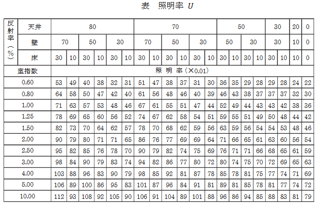 室指数も出てきており、照明率の表も使用するため少し難易度は高めかと思いますが、