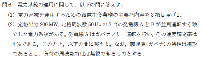 問6:電力系統の運用に関する論説・計算問題