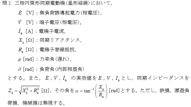 問1:円筒型同期電動機に関する計算問題